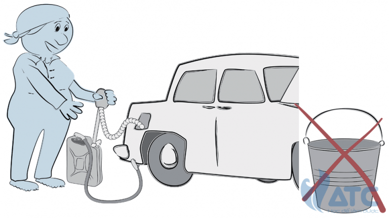 - Sử dụng ống si-phông hoặc bơm độc lập thủ công (không chạy điện) để truyền xăng dầu an toàn ở cả hai đầu ống.