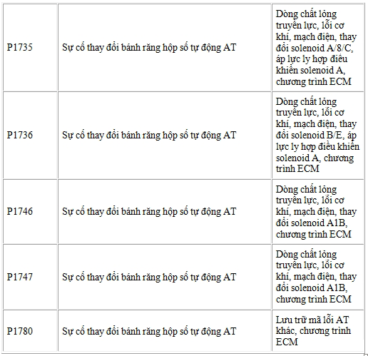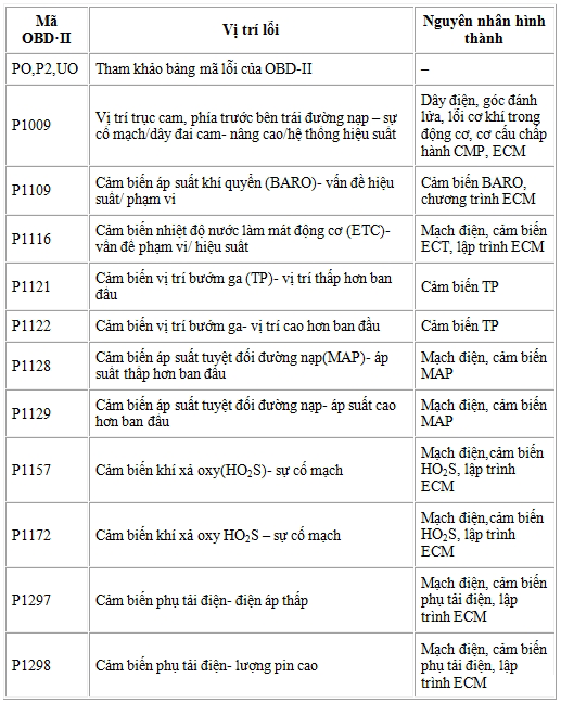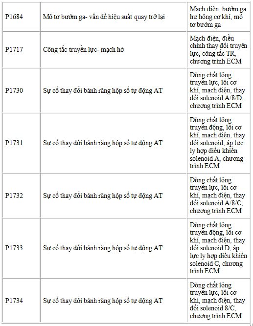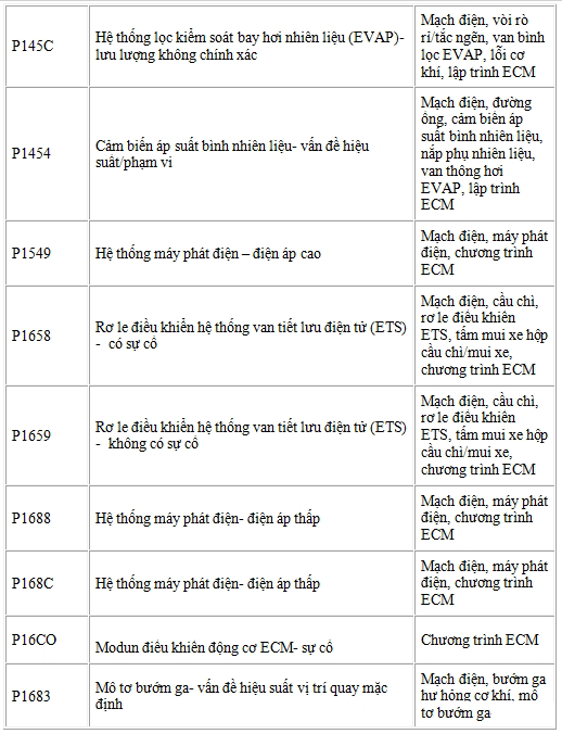 2. Thông tin ý nghĩa mã lỗi trên dòng xe HONDA CR-V như sau