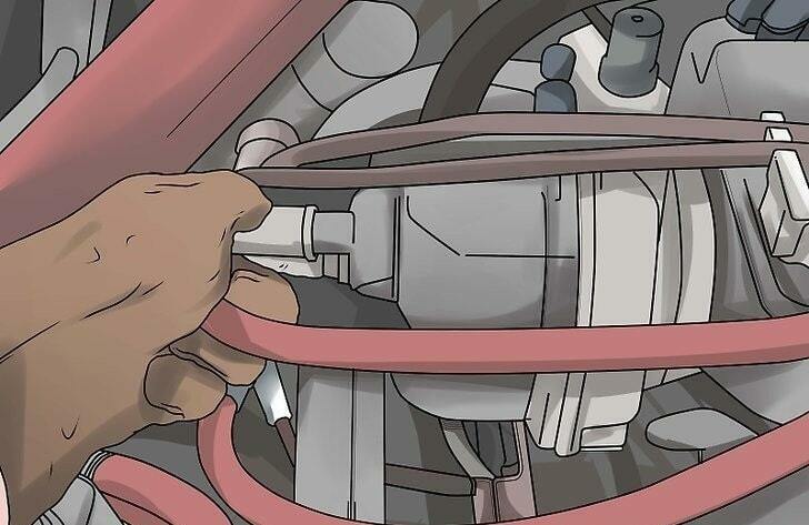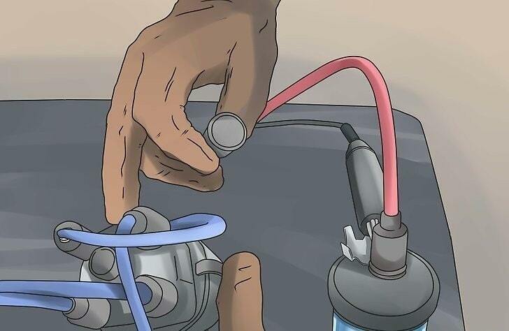 Tiếp đến hãy tháp dây cao áp của 1 bugi. Thường thì những dây này chạy từ nắp bộ chia điện tới từng bugi riêng. Để tiếp kiệm thời gian và tránh làm hư bugi của xe, hãy sử dụng một bugi khác để thử.