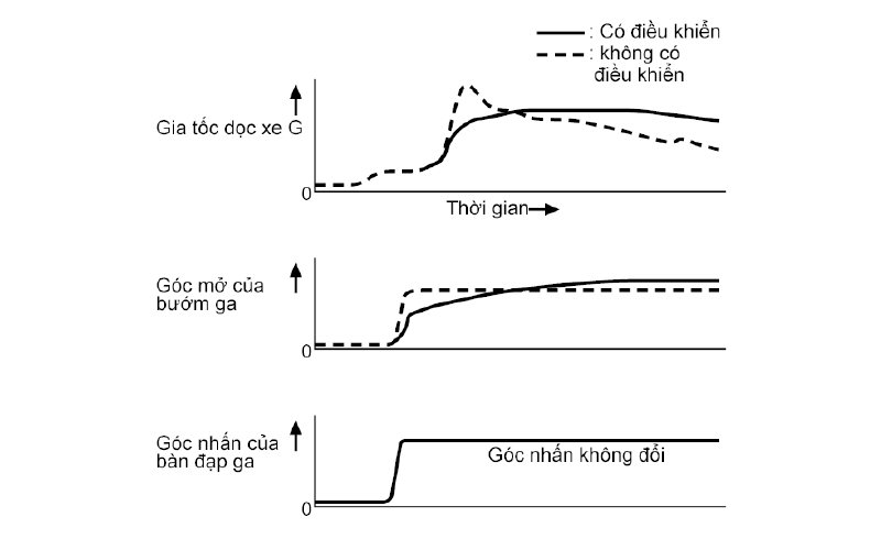 So với xe đó, kiểu xe có điều khiển momen truyền lực chủ động, bướm ga được mở dần ra sao cho gia tốc dọc xe G tăng dần trong một khoảng thời gian lâu hơn để đảm bảo tăng tốc êm.