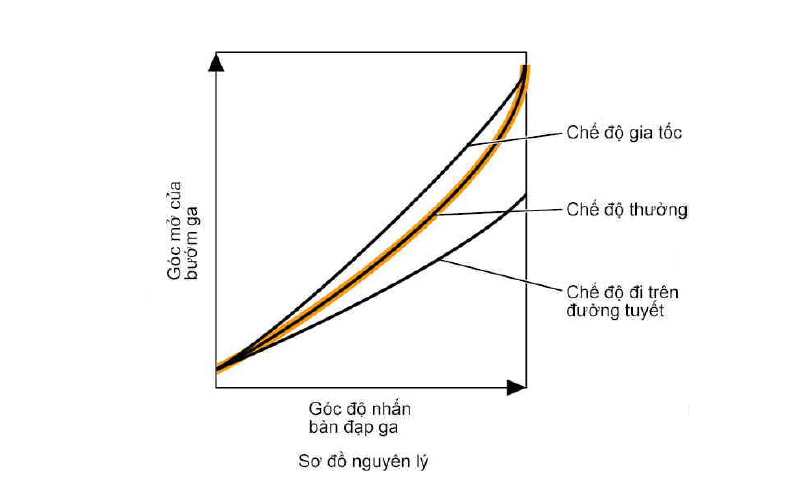 - Điều khiển chế độ công suất cao: Ở chế độ này, bướm ga mở lớn hơn so với chế độ bình thường. Do đó, chế độ này mang lại cảm giác động cơ đáp ứng ngay với thao tác đạp ga và xe vận hành mạnh mẽ hơn so với chế độ thường. Chế độ này chỉ có ở một số kiểu xe.