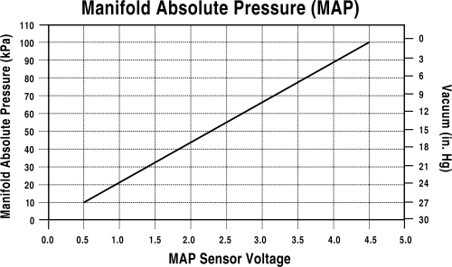 Nguồn cấp không đổi cho cảm biến là 5V. Áp suất trong buồng chân không trong cảm biến gần như là tuyệt đối và nó không bị ảnh hưởng bởi sự dao động của khí quyển, khi độ cao thay đổi.