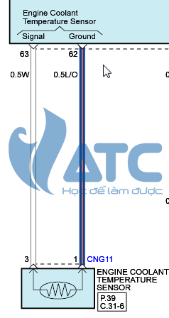 Sơ đồ mạch điện của cảm biến nhiệt độ nước làm mát