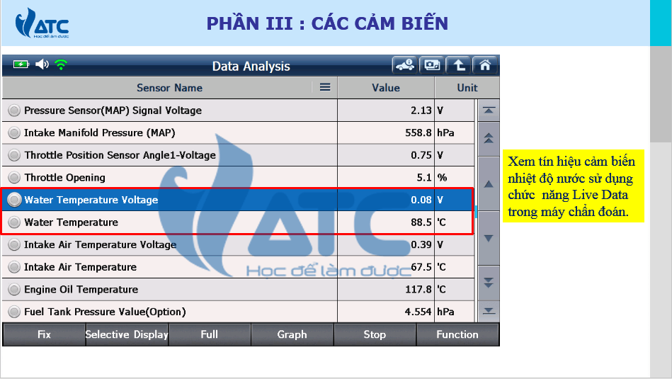 - Có thể sử dụng máy chẩn đoán để kiểm tra sự thay đổi nhiệt độ của cảm biến khi nổ máy.