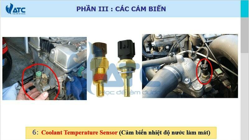 - Cảm biến nhiệt độ nước làm mát nằm trên lock máy hoặc trên đường ống nước làm mát, đầu cảm biến tiếp xúc với được làm mát.