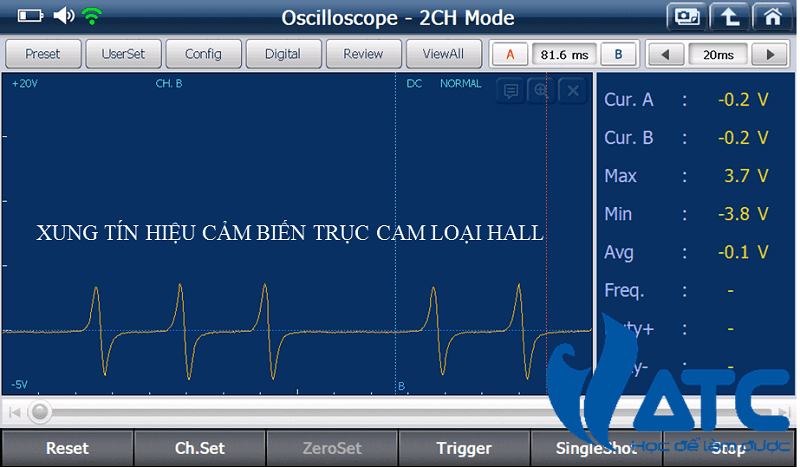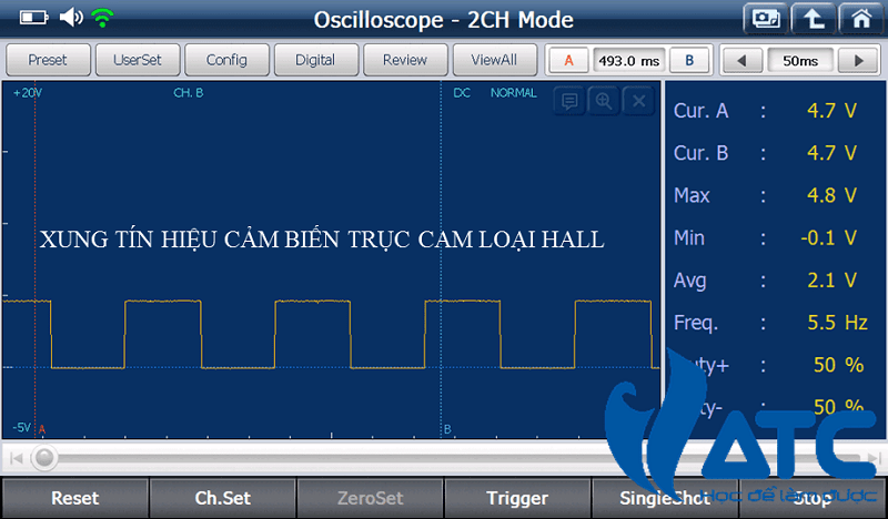 - Cảm biến trục cam loại Hall: Tạo ra loại xung có dạng vuông.