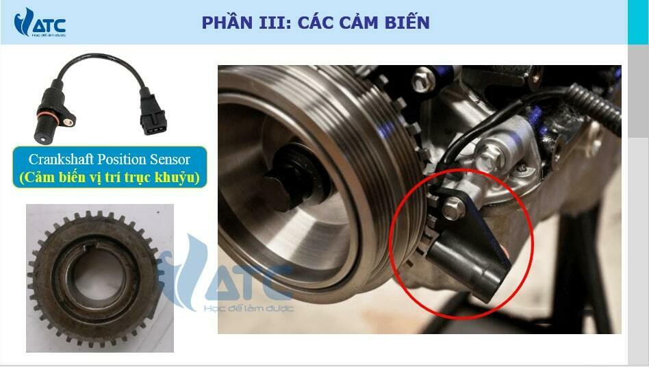 Cảm biến trục khuỷu thường nằm ở đầu buly, đuôi bánh đà, trên hộp số.