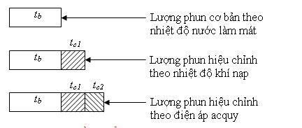 – Thứ hai là khoảng thời gian phun hiệu chỉnh (tc) khác nhau, được xác định bằng các cảm biến khác nhau.