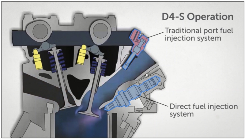 Sự kết hợp giữa 2 vòi phun này sẽ phát huy những ưu điểm khi bạn đạp ga mạnh hay nhẹ, cũng như bạn đang chạy ở vòng tua máy thấp hay cao. Nhờ công nghệ phun xăng kết hợp D-4S sẽ giúp tối đa hóa quá trình cháy và tăng tỷ số nén.