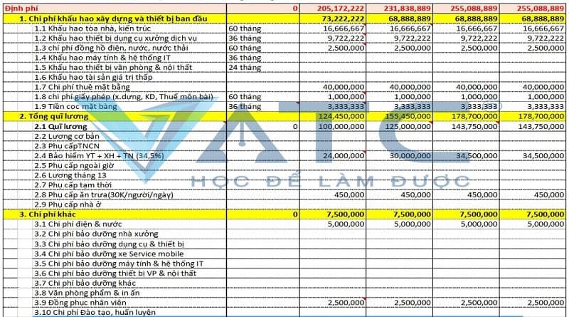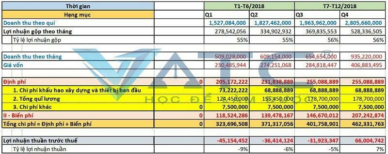 Các bạn phải xác định được các loại chi phí trong gara của mình, bao gồm: định phí, biến phí, tổng chi phí và điểm hòa vốn. Cụ thể, các bạn xem hình dưới đây: