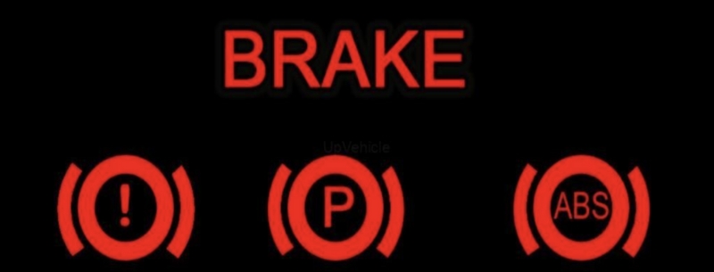 Đèn báo này cho bết xe bạn đang có vấn đề với hệ thống phanh hoặc hệ thống chống bó cứng phanh ABS, điều này cho thấy thực sự là không an toàn khi lái xe nếu phanh bị tổn hại. Nếu đó là ABS, xe bạn vẫn có thể tiếp tục đi được, nhưng nó sẽ mất đi tính năng an toàn của ABS khi phanh gấp, mất ổn định lái và kiểm soát lực kéo. Đèn phanh sáng khi hệ thống phanh có vấn đề, một vài trường hợp nó cho thấy áp suất dầu phanh thấp, lỗi bộ phận hỗ trợ phanh khẩn cấp.