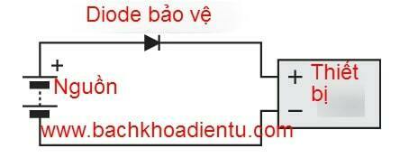 Để có thể bảo vệ những thiết bị này được an toàn, người ta sẽ đấu thêm một Diode trước khi bắt ra cực của thiết bị. Điều này sẽ khiến dòng điện chỉ cho phép đi theo một chiều duy nhất. Khi đó, dù bạn có cấp nguồn ngược cực thì thiết bị vẫn được an toàn.