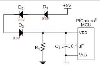 Ví dụ bạn có một chiếc đài chạy 3V mà có cục sạc 5V, thì bạn có thể đấu tiếp nối 3 con Diode với nhau, sau đó đấu vào đầu 5V. Tại đầu ra cuối cùng của Diode có một điện áp khoảng gần bằng 3V.