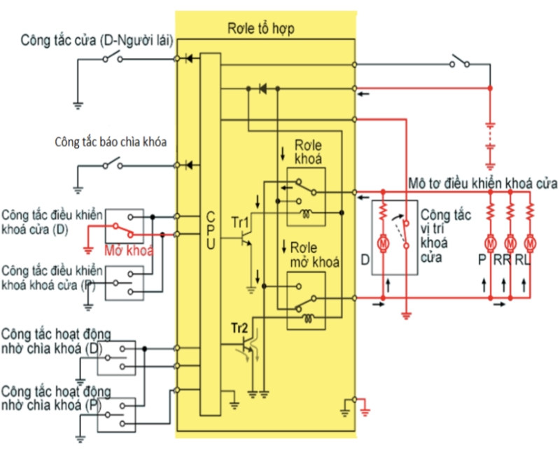 - Sơ đồ hệ thống Lock cửa bằng điện trên xe: