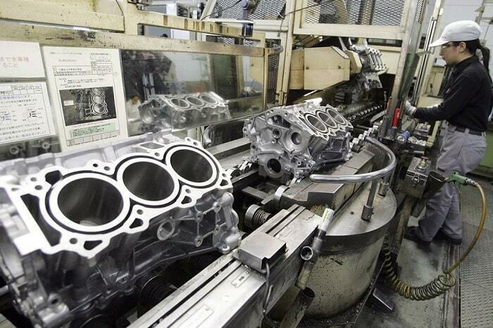 Động cơ V8 thường có góc tạo bởi 2 trục của xylanh là 90o, trong khi đó động cơ V6 là 600. Chính bởi điều này nên quá trình sản xuất động cơ V6 và V8 không có nhiều công đoạn được lặp lại trên dây chuyền sản xuất động cơ. Việc này đòi hỏi chi phí trang bị dây chuyền sản xuất của 2 loại động cơ này phải riêng biệt khiến tốn nhiều kinh phí sản xuất hơn.