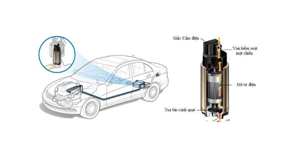 - Khi hoạt động, bơm nhiên liệu được lắp trong bình nhiên liệu và được kết hợp với bộ lọc nhiên liệu, bộ điều áp, bộ đo nhiên liệu, v.v…