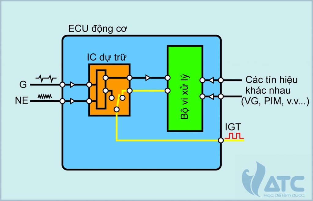 - Khi thực hiện việc điều chỉnh đánh lửa sau khởi động, tín hiệu IGT được bộ vi xử lý tính toán và truyền qua IC dự trữ này.