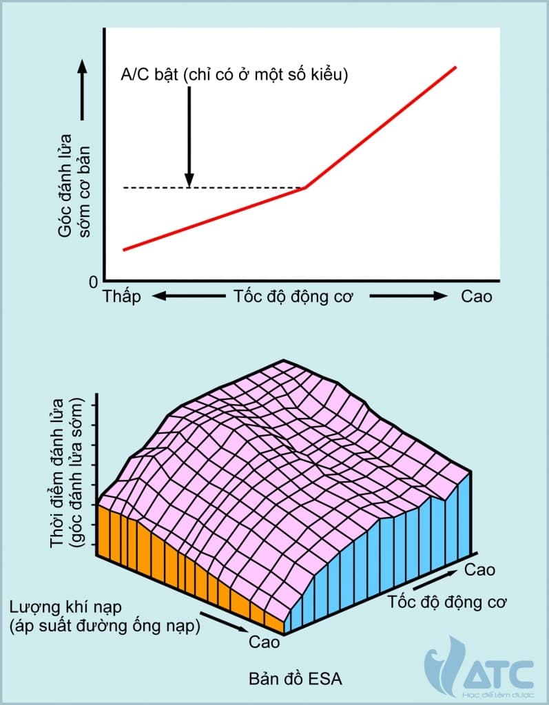- Một số kiểu động cơ thực hiện góc đánh lửa sớm theo điều kiện máy điều hòa không khí bật mở hay tắt.