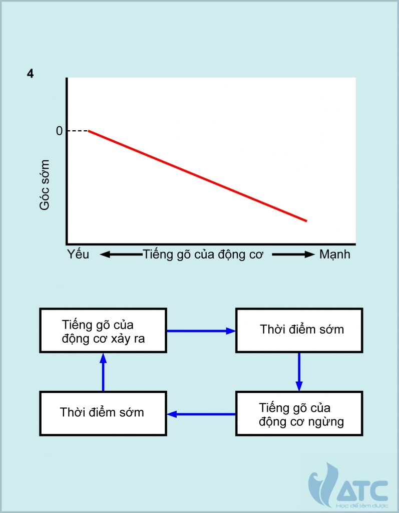 - Khi hết tiếng gõ ở động cơ, ECU động cơ ngừng làm muộn thời điểm đánh lửa và làm nó sớm lên một chút tại thời điểm được xác định trước.