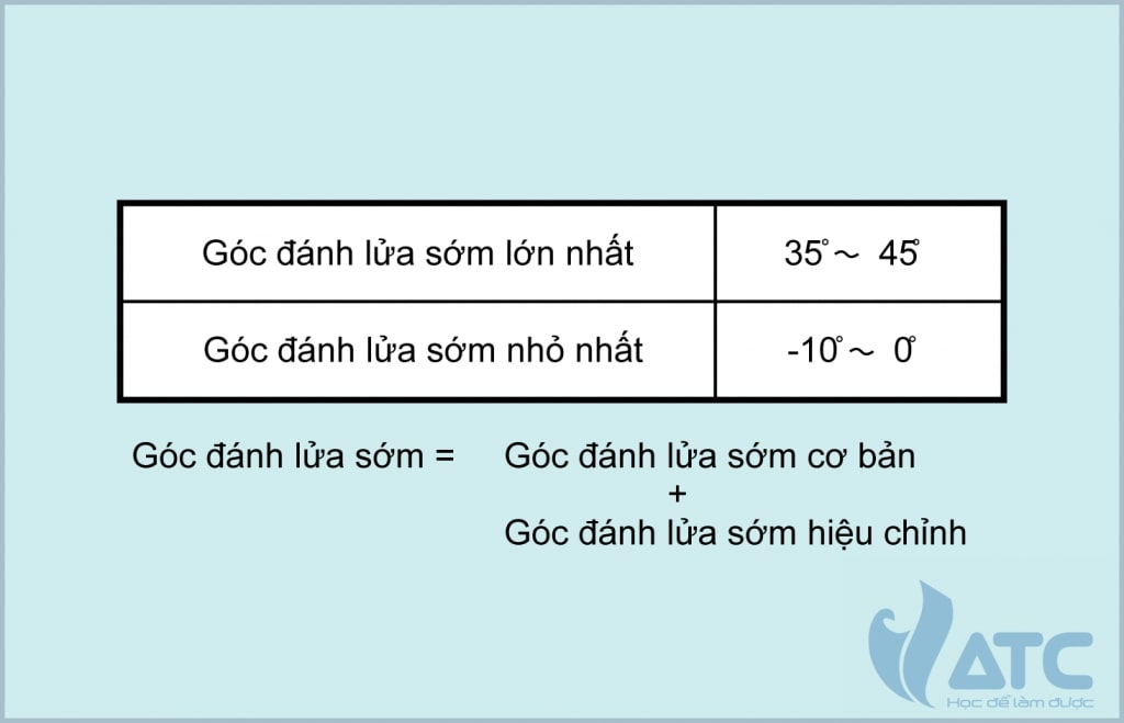 Góc thời điểm đánh lửa ban đầu được xác định như sau: