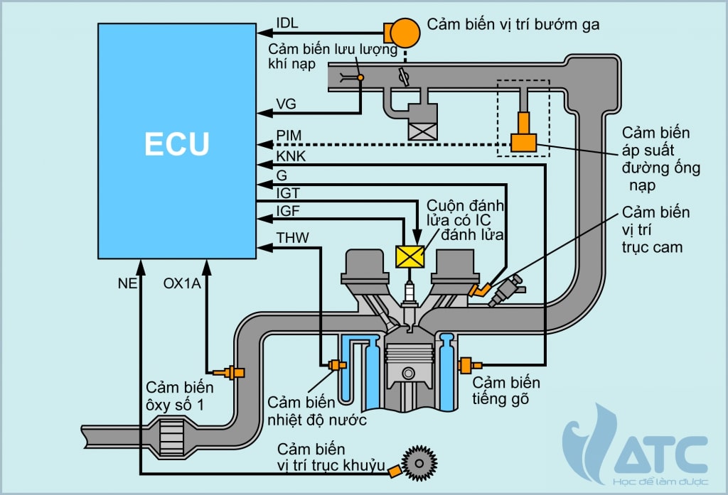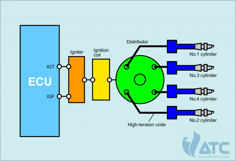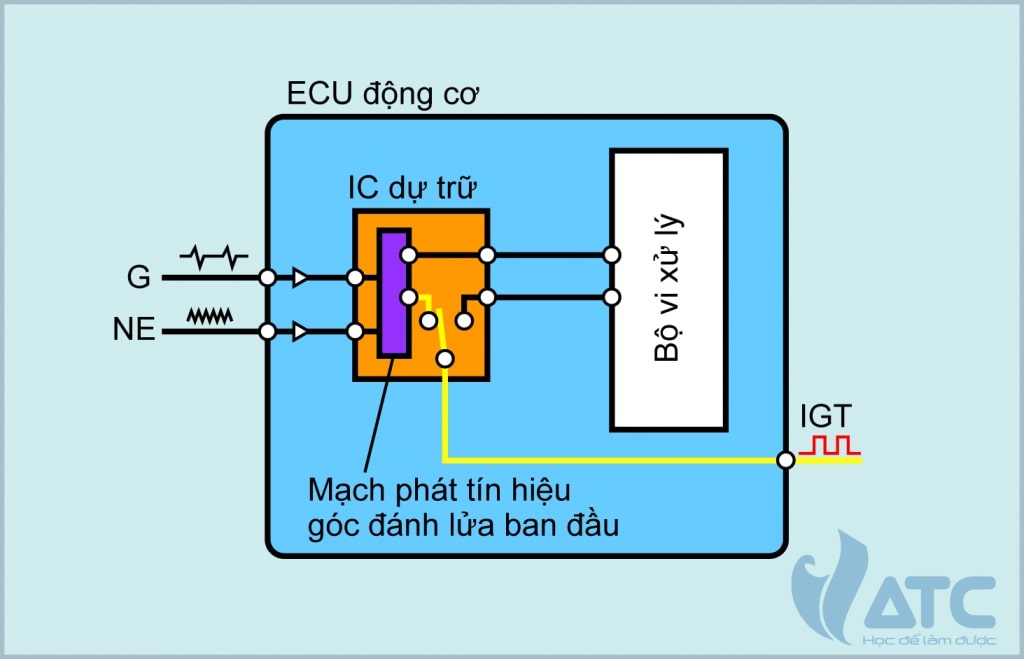 ECU động cơ tính toán thời điểm đánh lửa tối ưu theo các tín hiệu từ các cảm biến khác nhau và truyền tín hiệu IGT đến IC đánh lửa.