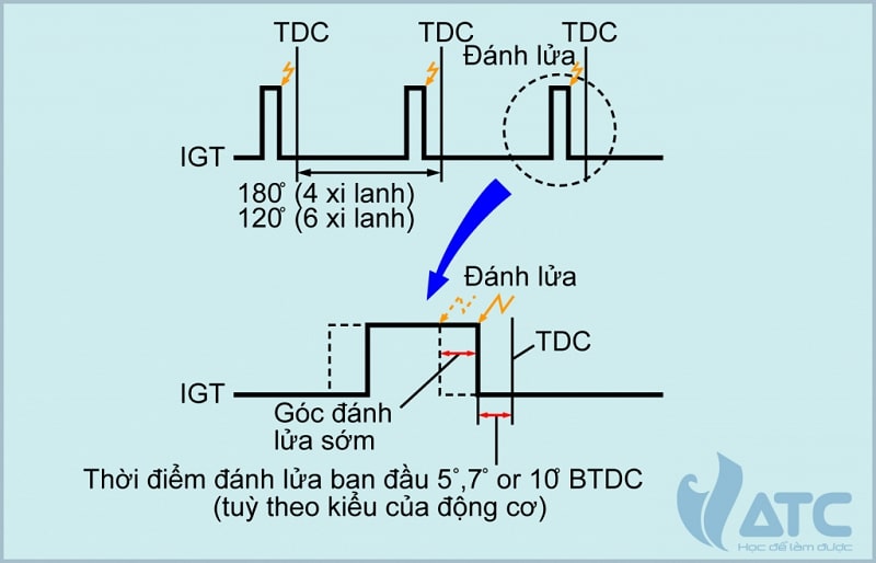 - Vì vậy, thời điểm đánh lửa được đặt ở góc thời điểm đánh lửa ban đầu.