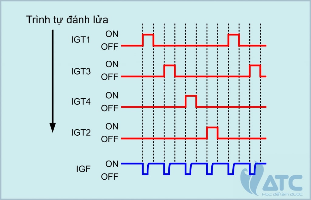 Tín hiệu IGT được bật ON ngay trước khi thời điểm đánh lửa được bộ vi xử lý trong ECU động cơ tính toán, và sau đó tắt đi. Khi tín hiệu IGT bị ngắt, các bugi sẽ đánh lửa.