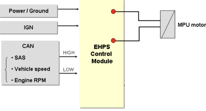 Tốc độ động cơ: Động cơ phải khởi động để kích hoạt hệ thống EHPS. Tín hiệu này nhận từ ECM của động cơ thông qua CAN.