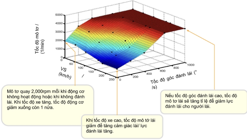 Tốc độ xe: Tốc độ của mô tơ lái tỉ lệ với tốc độ góc đánh lái nhưng tỉ lệ nghịch với tốc độ xe, giúp làm tăng cảm giác lái khi xe chạy ở tốc độ cao (giống chức năng của hệ thống lái trợ lực điện EPS).