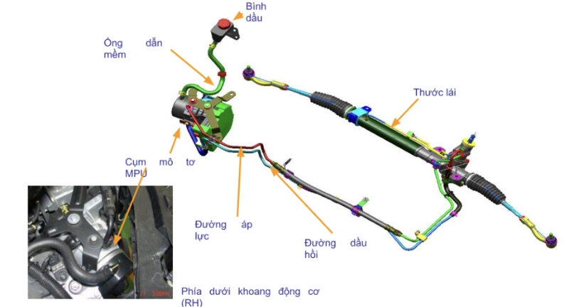 2. Sơ đồ bố trí hệ thống lái trợ lực điện – thủy lực