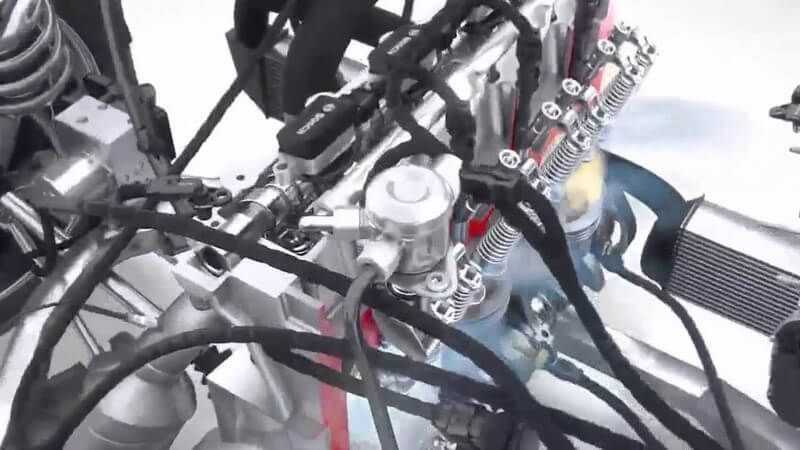 Với việc sử dụng một vòi phun nhiên liệu từ bên trong xylanh (giống với động cơ diesel) có áp suất phun lớn, nhà sản xuất đã đẩy tỉ số nén của động cơ lên cao, qua đó giúp hỗn hợp không khí và nhiên liệu “tơi” hơn. Quá trình cháy được diễn ra một cách hoàn hảo, giúp công suất của động cơ tăng cao, tiết kiệm nhiên liệu, đồng thời giảm thiểu tối đa khí thải vào môi trường.