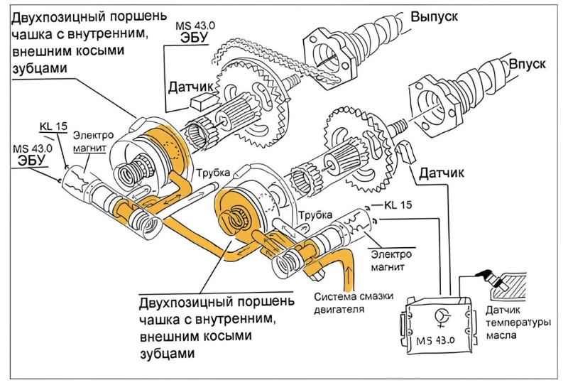 Do những thay đổi này trong vị trí của trục cam, thời gian van thay đổi. Kết quả là, các van mở sớm hơn một chút so với thời gian cần thiết hoặc muộn hơn một chút so với vị trí ban đầu của trục.