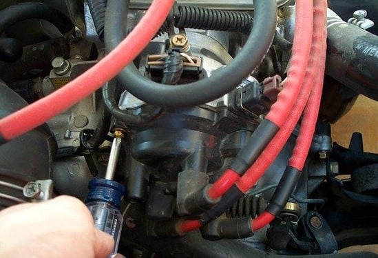 (*) Lưu ý: Nếu bộ chia điện xe của bạn có gắn đường ống chân không để điều khiển đánh lửa sớm thì bạn hãy rút ống chân không ra. Sau đó bạn hãy bịt chặt nó lại bằng bu lông, tránh trường hợp trong lúc điều chỉnh bộ chia điện chân không bị rò rỉ ra ngoài.