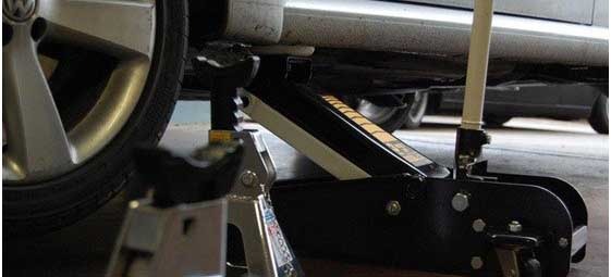 Sử dụng đội chết nâng phần đầu xe lên cao để có không gian làm việc, lưu ý hãy chặn các bánh xe để tránh xe di chuyển tự do.