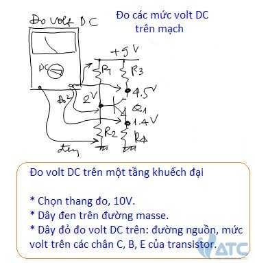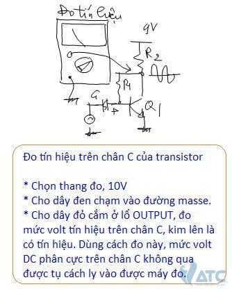 Chúng ta biết, trên các chân C, chân B của các transistor thường vừa có tín hiệu AC và vừa có điện áp phân cực DC, hơn nữa biên độ tín hiệu AC trên các chân này thường rất nhỏ, do đó, khi muốn đo kiểm tra tín hiệu trên các điểm này, chúng ta thường dùng thang đo AC, lấy thang đo nhỏ, thường là thang đo 0-10V. Tuy nhiên khi đo, để tránh ảnh hưởng của mức volt DC dùng để phân cực, chúng ta cho dây đỏ cắm ở lỗ OUTPUT.