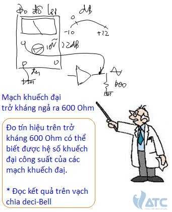 Người ta còn dùng phép đo Volt AC để xác định độ lợi công suất của các mạch khuếch đại, kết quả đọc được lấy theo vạch chia db (Deci-Bell). Khi đo công suất của mạch khuếch đại, Bạn phải tuân thủ các qui định sau: Tín hiệu tác động phải có dạng Sin, tần số 50Hz. Công suất tín hiệu ứng với 1VAC đo trên trở kháng 600 Ohm được ghi là 0dB, vậy khi đo công suất trên các ngả ra Bạn cũng phải có trở kháng là 600 Ohm, nếu kim chỉ +10dB, chúng ta nói mạch khuếch đại có độ lợi công suất là 10dB, nếu kết quả đo là -5dB, chúng ta nói mạch làm xuy giảm tín hiệu là -5dB. Ưu điểm của phép đo công suất lấy theo vạch chia deci-bell là độ lợi của các tầng có thể cho cộng lại, độ xuy giảm thì cho trừ bớt.