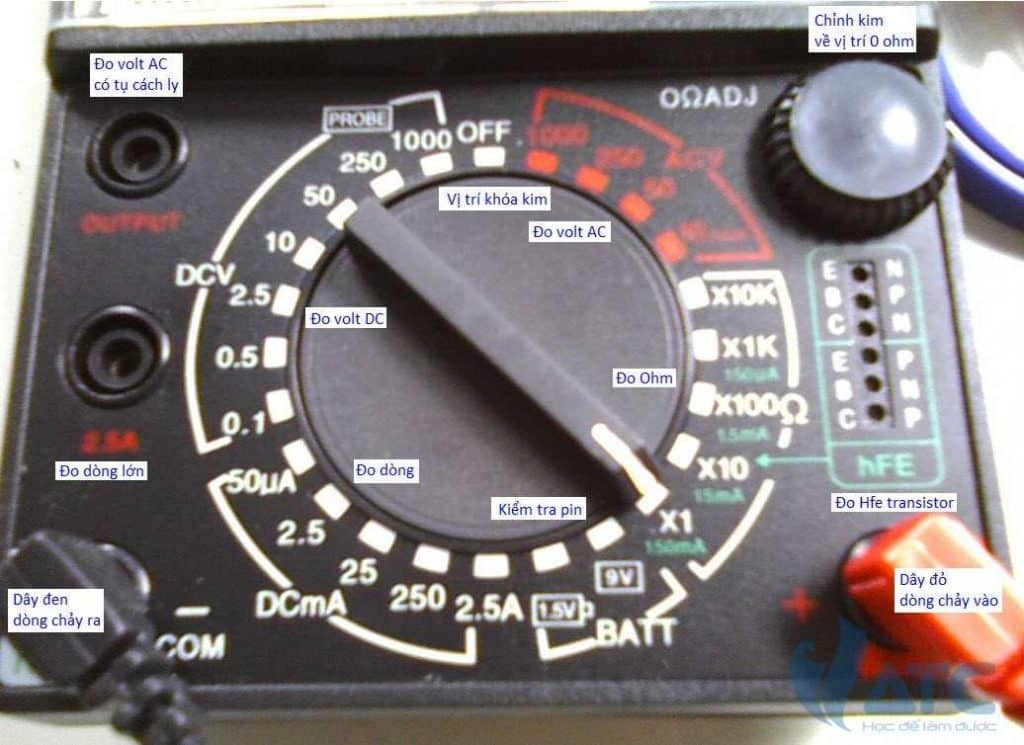 Phân tích máy đo VOM qua các chú thích trong hình:
