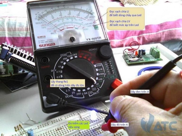 Dùng Ohm kế đo kiểm tra các Led.