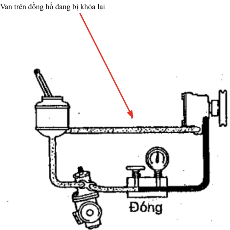 Bước 4: Khóa van trên đồng hồ và quan sát kết quả trên đồng hồ đo áp.