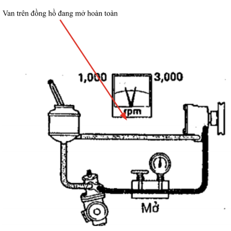 Bước 6: Nổ đồng cơ tại 1000 rpm sau đó ghi lại kết quả trên đồng hồ.