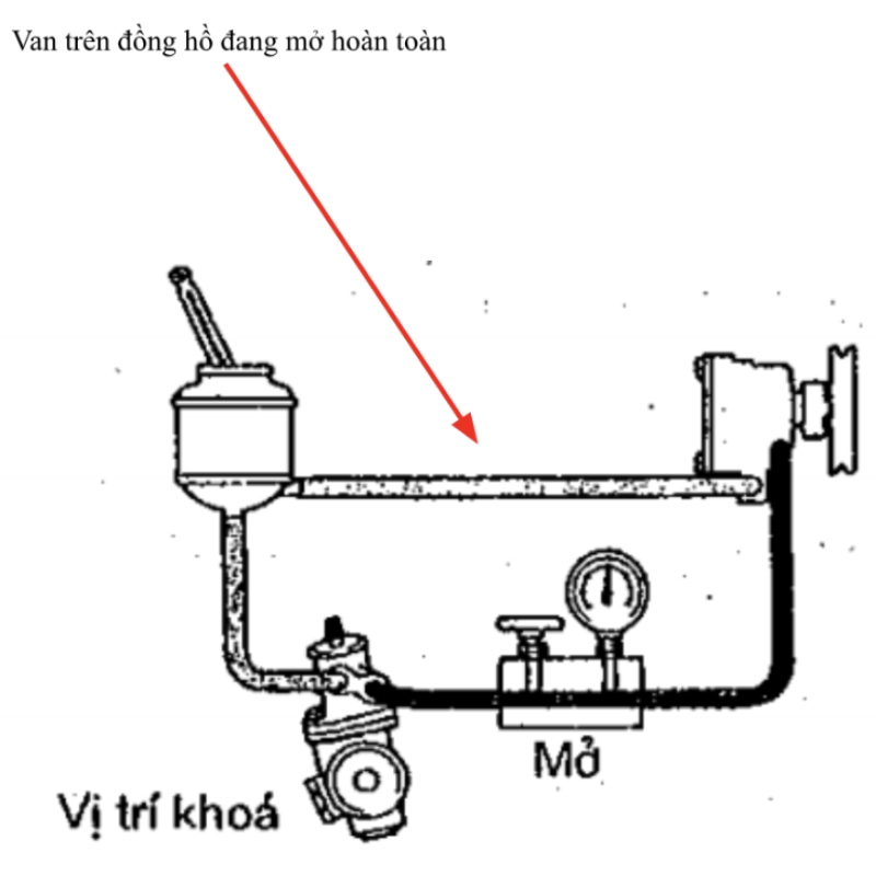 - Lưu ý: Không được khóa van trên đồng hồ quá 10s.