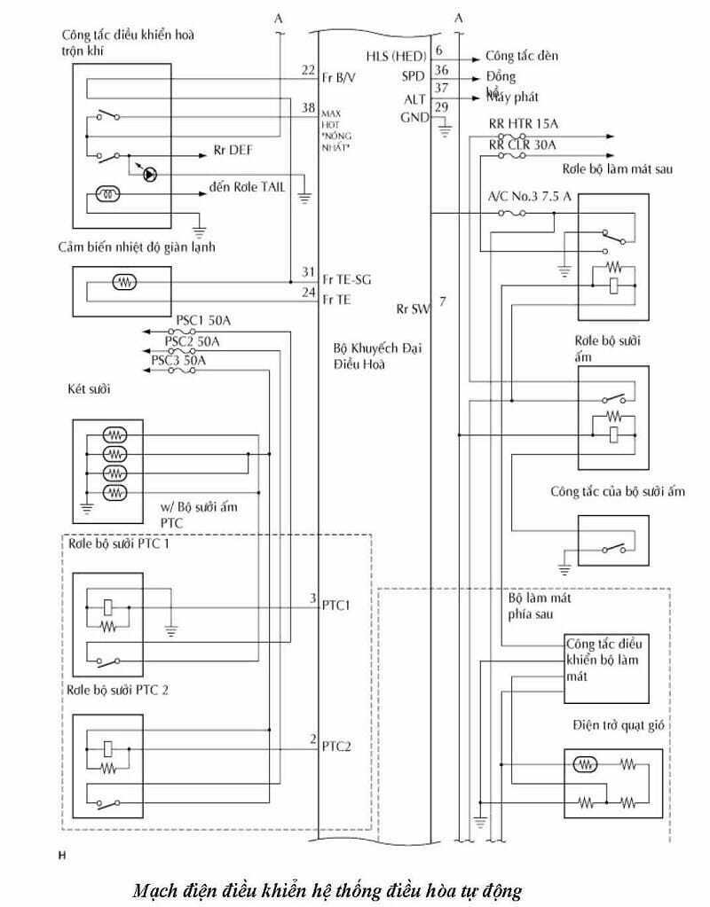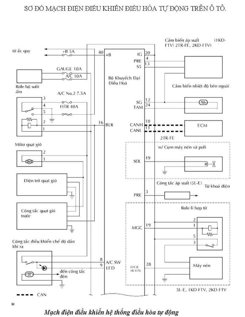 1. Sơ đồ mạch điện điều khiển điều hòa tự động ô tô