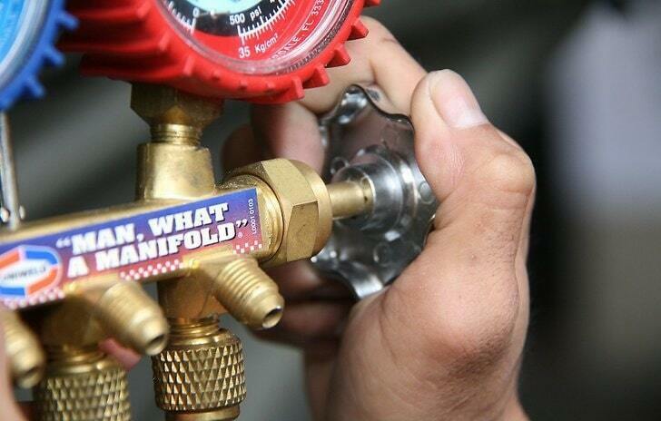 Mở đường van thấp áp trên đồng hồ cho tới khi nghe tiếng gas lạnh xì ra, sau đó từ từ nới lỏng khớp nối và nối ống nạp với bộ van của đồng hồ đo áp suất. Khi gas lạnh xì ra ngoài thì bạn siết chặt lại các khớp nối để ngăn không khí và độ ẩm bên ngoài vào hệ thống.