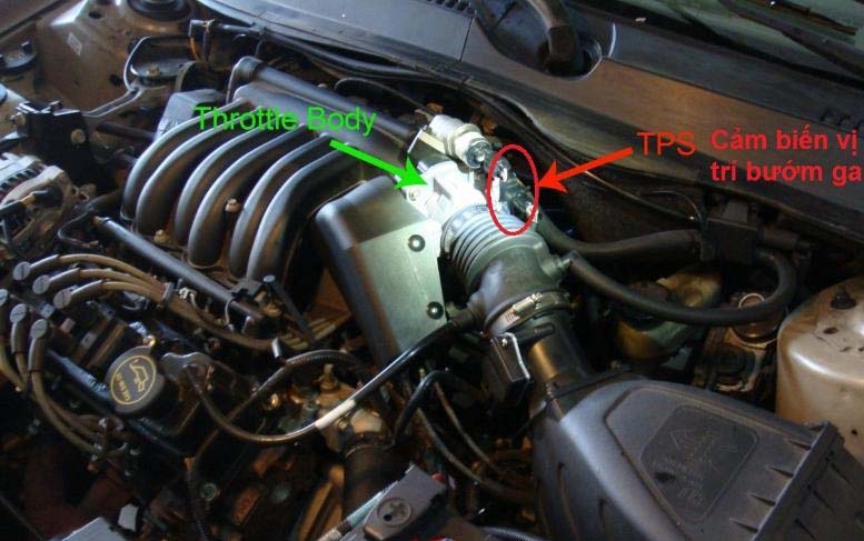 Cảm biến vị trí bướm ga (TPS) được lắp đặt ngay trên cổ họng gió. Cảm biến này biến đổi góc mở bướm ga thành điện áp, được truyền đến ECU động cơ như tín hiệu mở bướm ga (VTA).