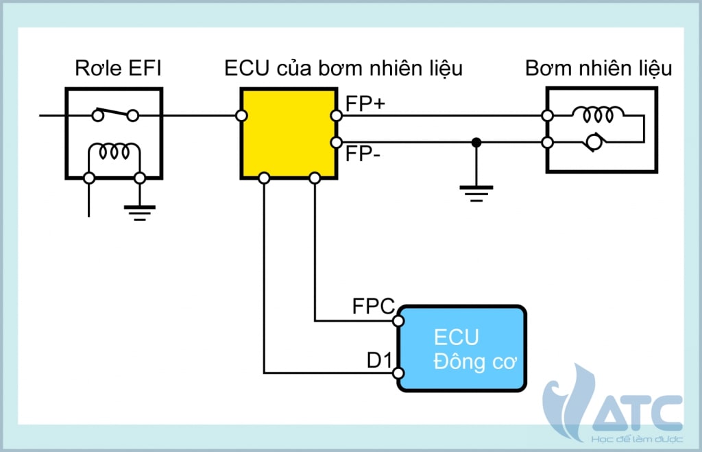 - Khi phát hiện một sự cố, một tín hiệu được truyền đi từ ECU của bơm nhiên liệu đến cực DI của ECU động cơ.