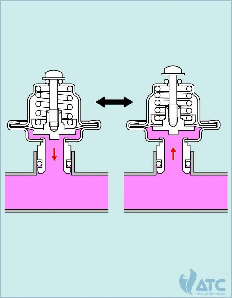 - Hoạt động cơ bản cũng giống như loại 1, nhưng độ chân không của đường ống nạp được đặt vào buồng trên của màng chắn, áp suất nhiên