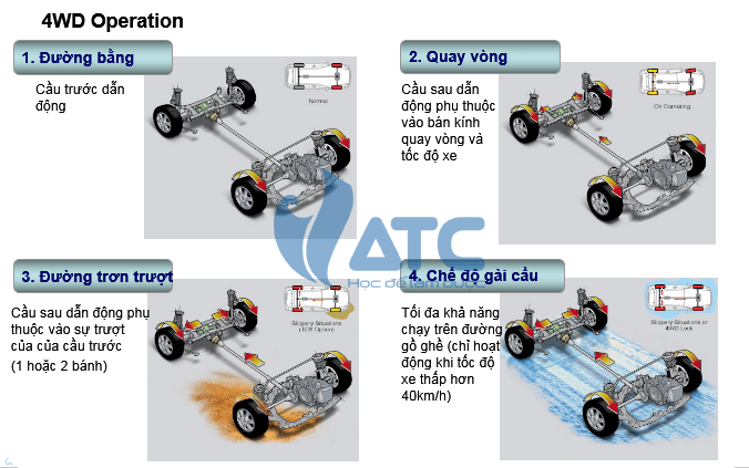 Trung tâm huấn luyện kỹ thuật ô tô Việt Nam VATC gửi đến các bạn đọc – đam mê nghề sửa chữa ô tô bộ tài liệu Tài liệu tổng quan về hệ thống dẫn động 4 bánh chủ động 4 WD.