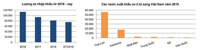 - Trong đó, lượng ô tô nhập khẩu chủ yếu tới từ thị trường Thái Lan và Indonesia, do cả hai nước này đều được hưởng mức thuế nhập khẩu là 0% theo hiệp định ATIGA có hiệu lực từ ngày 01/01/2018.