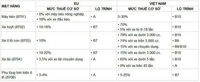 - B7: Thuế cơ sở sẽ được xóa bỏ sau 8 lần cắt giảm đều, mỗi năm cắt giảm một lần và bắt đầu cắt giảm từ năm hiệp định có hiệu lực.