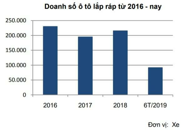 Cầu ô tô lắp ráp trong nước sụt giảm khá mạnh. Tính tới hết tháng 06/2019, doanh số bán ra của các mẫu xe lắp ráp trong nước đạt khoảng 91.731 xe, giảm 14% so với cùng kỳ năm trước đó. Trong khi sản lượng xe lắp ráp 6 tháng đầu năm 2019 ở mức 159.218 xe. Tính ra dư hơn 67.000 xe.